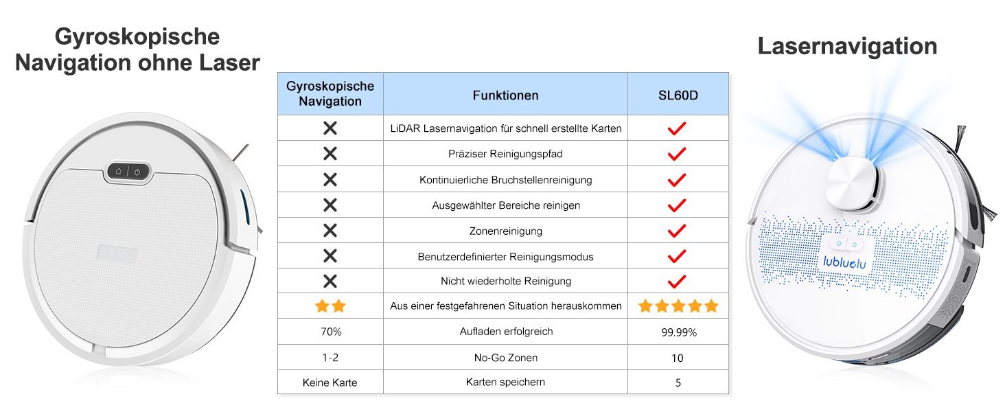 Lubluelu Saugroboter mit Lasernavigation — 360° schnelles Mapping